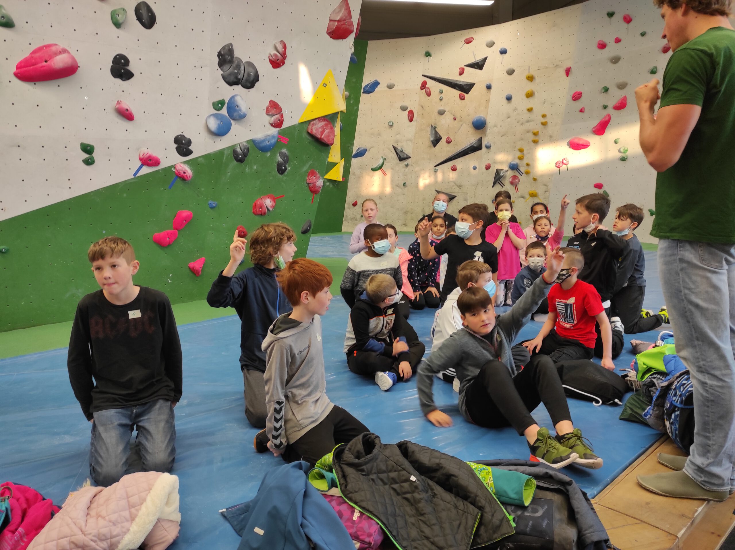 Am 30. März um 8 Uhr gingen wir zur Boulderhalle. Ein Trainer namens Alex hat und alle Regeln erzählt. Dann ging die Aufwärmung los. Nach der Aufwärmung wurden wir in Gruppen geteilt. Ein bisschen später gingen wir schon bouldern. Es hat allen Spaß gemacht. Wir haben noch Kletter-Memory und Kletter-Stein-Schere-Papier gespielt. Das war es dann mit Bouldern.